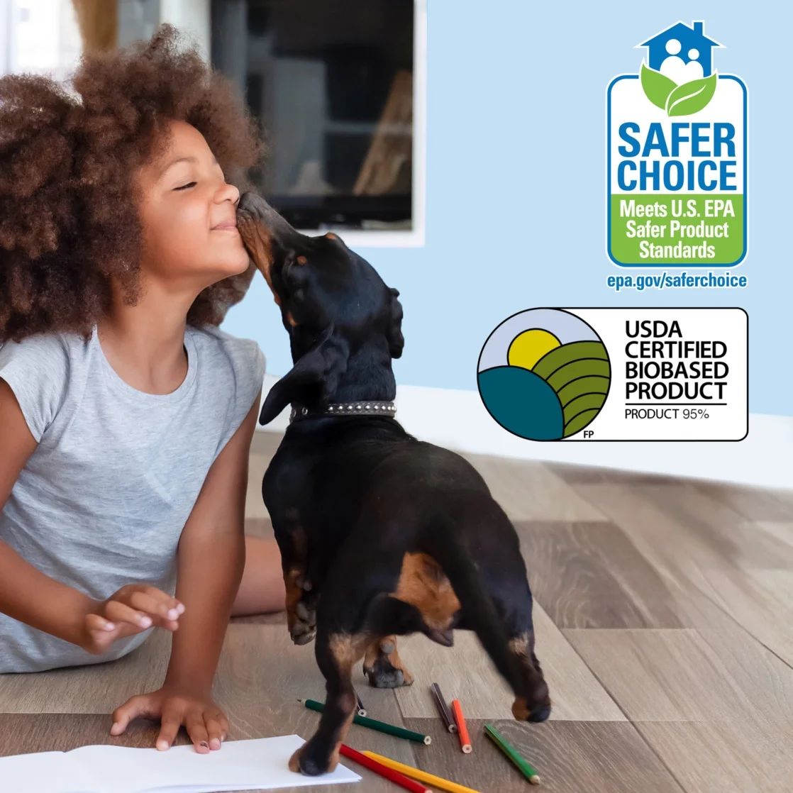 Formulation contains 95% USDA certified biobased content. Meets the U.S. EPA product standards and is Safer Choice Certified