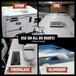 Liquid Rubber Solar Reflective Sealant Roof Coating, White, 1 Gallon, covers up to 50 Sq ft and protects your RV roof from leaks, UV damage, and weathering. This easy-to-apply, flexible coating creates a waterproof barrier that keeps your roof in great shape. The bright white color helps reflect sunlight, keeping your RV cooler. Made with an eco-friendly, solvent-free formula, it’s safe for both indoor and outdoor use. Perfect for maintaining and protecting your RV, trailer, or camper roof.